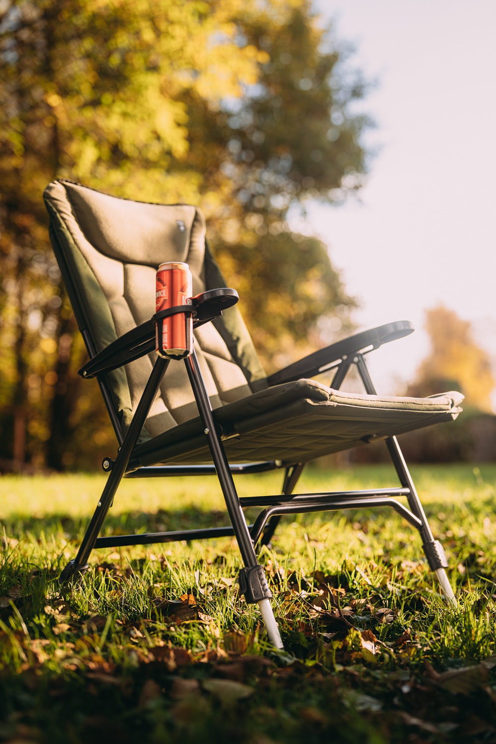 Rychlé sestavení a snadné polohování opěradla, pomocí područek, tak dělá křesílko ideálního parťáka na rybářské výpravy.