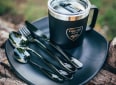Akční set, který obsahuje kvalitní nerezový termo hrnek o objemu 400 ml a sadu příborů z černé nerez oceli s přepravním obalem. Parádní dárek pro příznivce pobytu u vody a v přírodě.