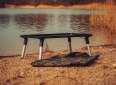 Stolek do přístřešku hliníkové konstrukce černé barvy, který je dodáván včetně nepromokavého obalu v atraktivním maskáčovém designu.