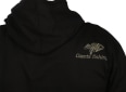 Mikina černé barvy s logem na prsou a zadním rameni v maskáčovém designu.