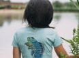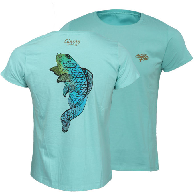 Kvalitní dámské tričko v zelené pastelové barvě s designem koi kapra na zádech.