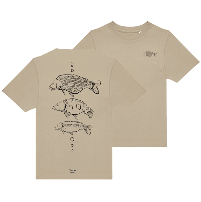 Kvalitní dětské tričko v béžové barvě s naším originálním designem tří kapříků na zádech. Na hrudi je menší decentní kapřík.