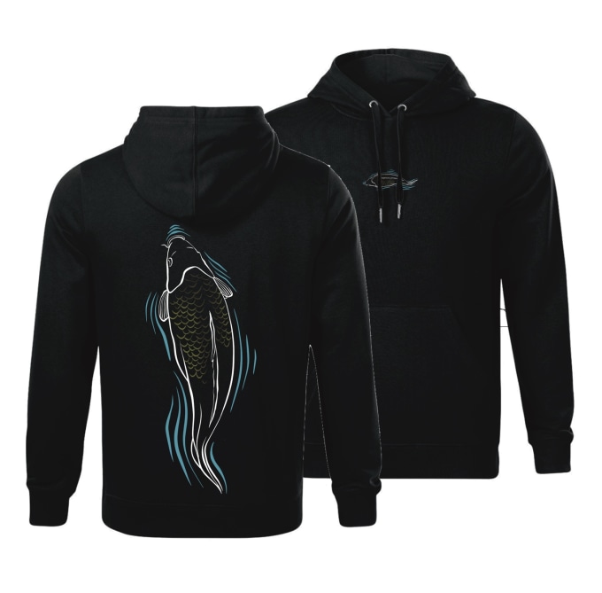 Mikina černé barvy s našim originálním návrhem plavajícího kapra u hladiny. Decentní návrh kapra na prsou a větší motiv na zádech.