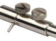 Vidlička ze silnostěnné nerez oceli. Aretace výšky pomocí dvou šroubů, které můžete jednoduše dotáhnout pomocí mince.