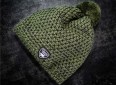 Férfi téli sapka olíva zöld színben pomponnal, amely fleece bélésű.